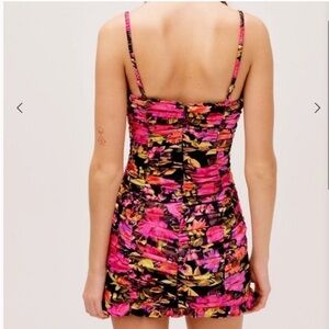 For Love And Lemons Pink, Black, Yellow Floral Cocktail Dress