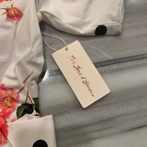 Charming mini dress with floral print. Puff sleeves and belted waist. Perfect for a chic look.