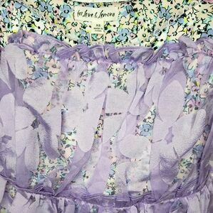 For Love And Lemons Purple Floral Sheer Bodysuit Midi Dress XS