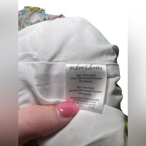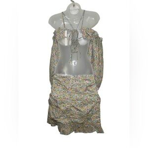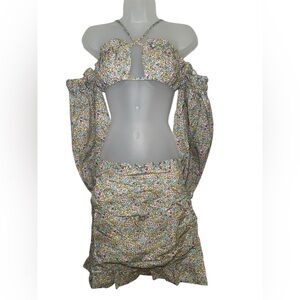 New with tags. For Love and Lemons Raleigh Set in size Medium. This charming two-piece set features a pastel floral crop top with adjustable dual-tie closure and removable off-shoulder puff sleeves. The matching high-waisted mini skirt is fully lined and made from 100% cotton for breathable comfort.