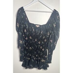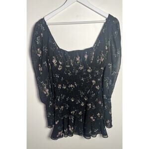 For Love And Lemons Revolve Dixon Black Floral Chiffon Smocked Mini Dress M