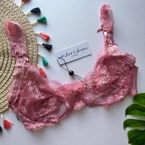 For Love And Lemons Shimmer Lace Bra Pink XL NEW