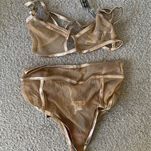 Elegant for love and lemons shimmering bra and undies set with metallic accents. Gorgeous.