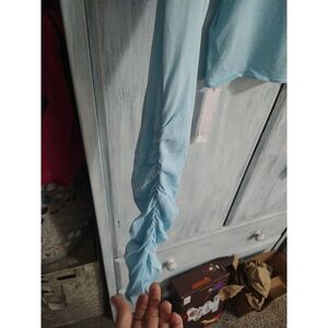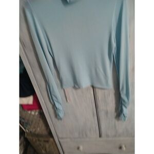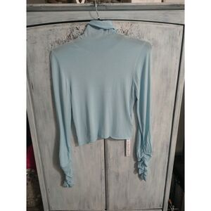 For Love And Lemons Turtleneck Ruched Sleeve Blouse Nwt Xl Sky Blue Semi-sheer
