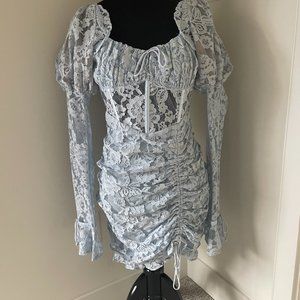 For Love And Lemons Victoria Blue Lace Mini Dress