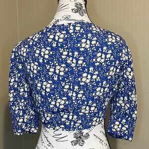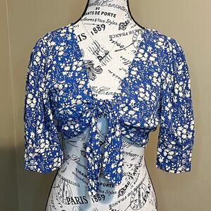 For Love And Lemons Zamira Floral Tie Front Crop Top Sz Large Blue White Flirty