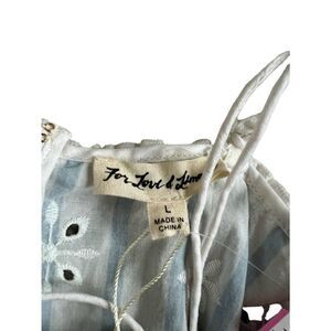 For Love And Lemons Picnic Eyelet Mini Dress Womens Large White Blue Striped Spa