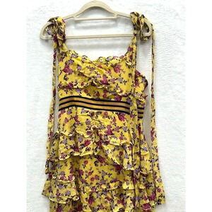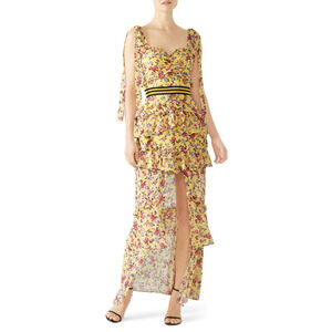 For Love & Lemon Womens Maison Floral Dress Ruffle Hi-Low Hem Yellow Size M