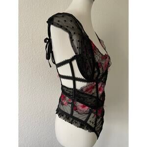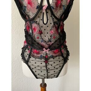 For Love & Lemons Zinnia Embroidered Floral Lace Thong Bodysuit Teddy