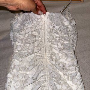 * Lace fabric with ruching throughout