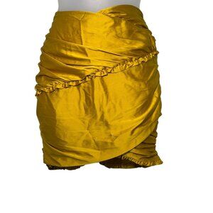 For Love & Lemons Alia Yellow Satin Ruched Ruffle Mini Skirt Small NWT
