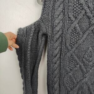 For Love & Lemons Andie Cut-Out Sweater Womens Small Gray Cableknit Fisherman Preppy