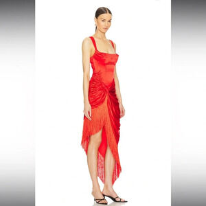 For Love & Lemons Anisa Asymmetrical Dress in Red