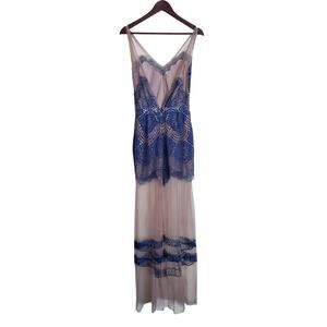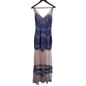 For Love & Lemons Antigua Dress Lace and Mesh Navy Beige Size Small