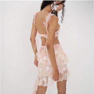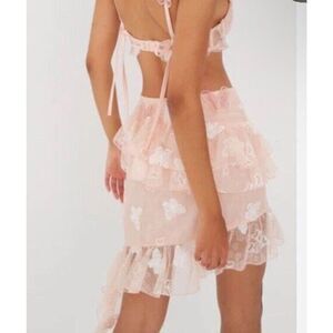 For Love & Lemons Archer Pink Butterfly Applique Lace Ruffle Mini Skirt SZ XL