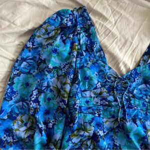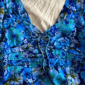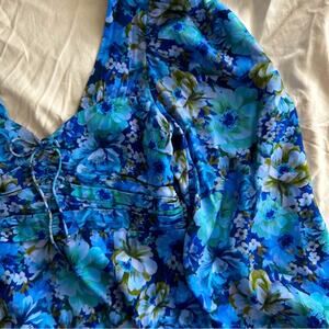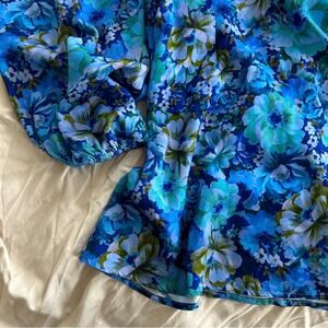 Gorgeous blue floral print, ruched detail, puff sleeves, elastic cuffs