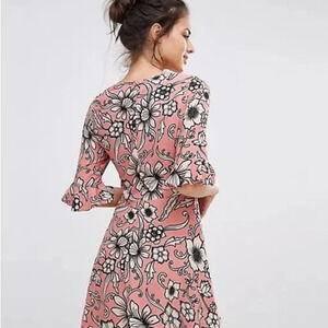 For Love & Lemons Ayla Laced Up Dress Floral Print Pink NWT Small Boho