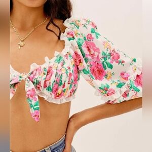 For Love & Lemons Imogen Crop Floral Top Size Small