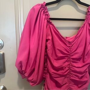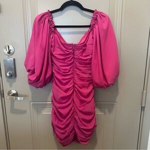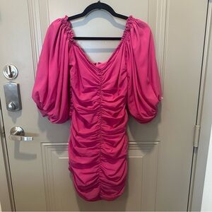 For Love & Lemons Bali Dress Size Small Pink Ruched Puff Sleeves