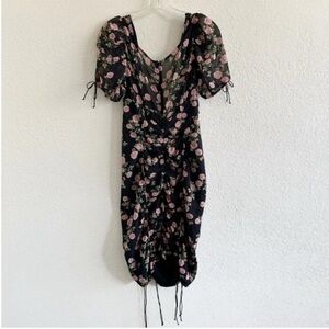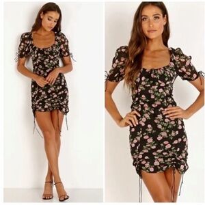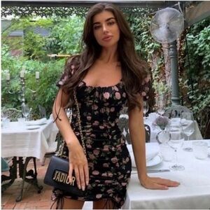 For Love & Lemons Biscotti Floral Silk Mini Dress Noir Rose