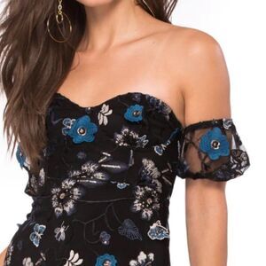For Love and Lemons Black Embroidered Botanical Off the Shoulder Mini Dress
