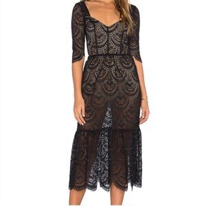 For Love & Lemons Black Lace Rosalita Midi Dress Size S Whimsigoth Scalloped