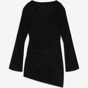 Cocktail Party Dress • Deep Cowl Neckline • Bell Sleeves • Ruching Hip • Velvet Bow Trims • Satin Rosettes • Long Sleeve • Mini Dress • Date Night • Party • Formal • Luxury • Designer • Contemporary • Gothic • Romantic • Holiday Party • New Years Eve • Christmas • Thanksgiving • Winter