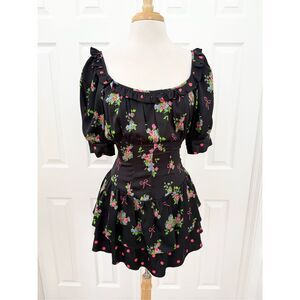 For Love & Lemons Bow Black Wilson Floral Peasant Style Mini Dress Small