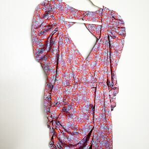For Love & Lemons Charlie Floral Ruched Puff Sleeve Dress XS NEW