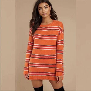 For Love & Lemons Charlie Sweater Orange Striped Oversize Crew Neck Long Sleeve Pullover