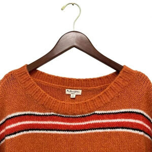 For Love & Lemons Charlie Sweater Orange Striped Oversize Crew Neck Pullover S