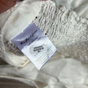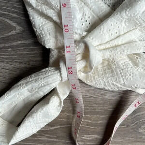 · Self & Lining: 100% cotton · Dry clean only · Embroidered eyelet fabric · Wrap design with tie closure · Smocked elastic back · Sleeve tie details.