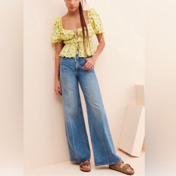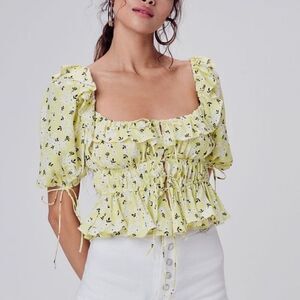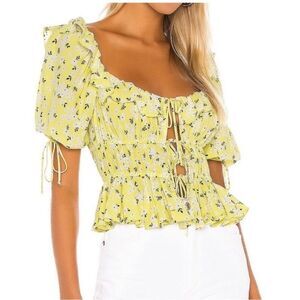 For Love & Lemons Chrysanthemum Floral Tie Front Short Sleeve Top Sz XS