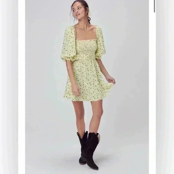 For Love & Lemons Chrysanthemum Mini Dress in Lemonade
