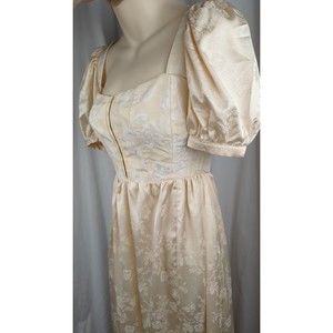For Love & Lemons Cream Square Neck Wedding Dress Puff Sleeve Brocade Cottage XS