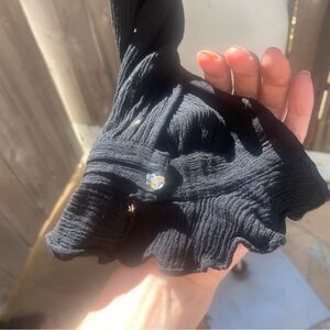 For Love & Lemons Black Crop Top Blouse accented with subtle gold stars and rhinestone buttons. The back is open. This top is gorgeous and flattering. Can be dressed up or down.