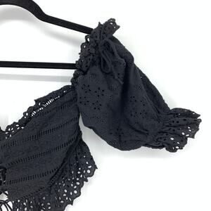 For Love & Lemons Crop Top Women's Sz Small Black Annabelle Lace Up Eyelet Lace