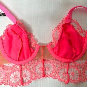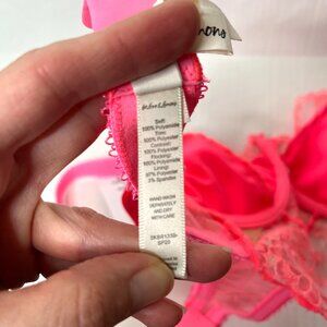 RARE! Gorgeous and sexy! From the Spring 2020 Love & Lemons/Victoria's Secret collaboration. Hot pink lace floral bra/bustier. Button front details. Underwire cups that are lightly lined. No padding. Adjustable straps and back hook closure. Also comes with an extra button!