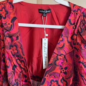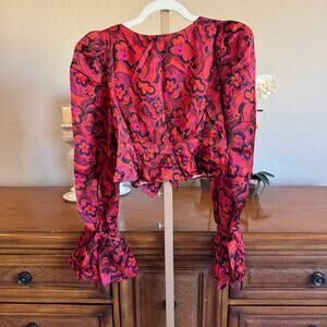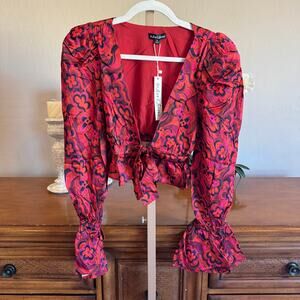 Turn heads with the sold-out For Love & Lemons Davina Top, new with tags and a true must-have. This statement blouse features bold design elements, making it perfect for elevated daytime or night-out looks. Feminine, fashion-forward, and flattering.