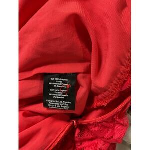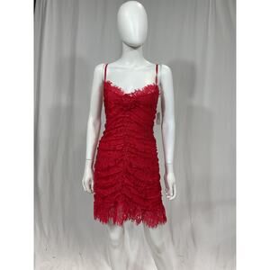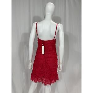For Love & Lemons 'Della' Red Mini Dress Size 1X: fully lined, closed with a concealed zipper at the back, adjustable straps, removable rosette on the bodice lace panel.