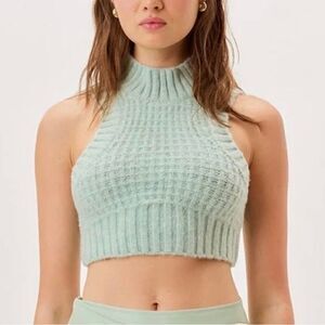 For Love & Lemons Dominique Crop Sweater Tank Green Large Open Back NWT