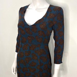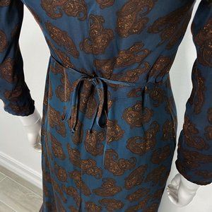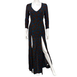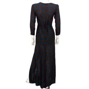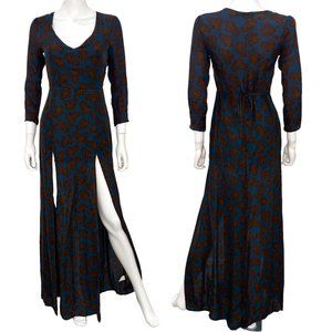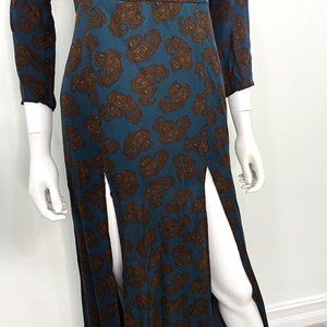 For Love & Lemons Double Slit V-Neck Maxi Dress Paisley Print Silk Blue Size S