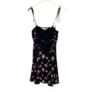 For Love & Lemons Dress Womens Small Black Cherry Print Tie Front Backless