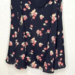 For Love & Lemons Dress Womens Small Black Cherry Print Tie Front Backless Rayon