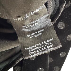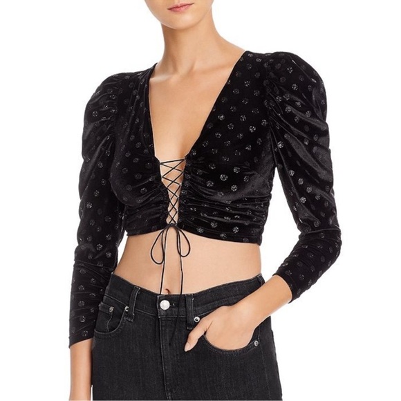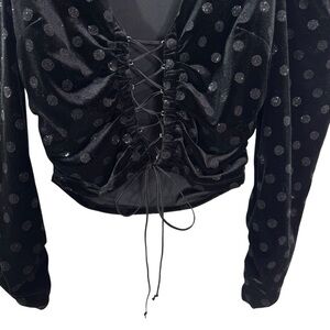 For Love & Lemons Elisa Velvet Glitter Dot Lace Up Cropped Top Black Size XS