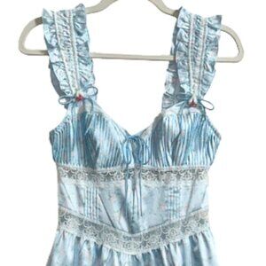 For Love & Lemons Ellery Slip Dress Blue Floral Satin S Romantic Mini