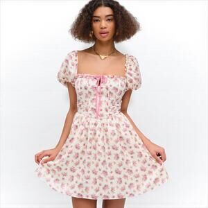 For Love & Lemons Etienne Pink Floral Coquette Puff Sleeve Mini Dress NWT Small