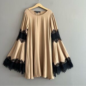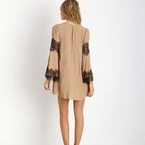 For Love & Lemons Festival Dress Lace Bell Sleeves Mini Tan Camel Black Small