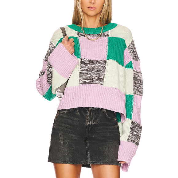 For Love & Lemons 'Finley' Green Acrylic Sweater Size S: knit fabric.