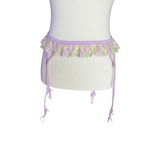 For Love & Lemons Floral Lace Garter Belt Lilac Pink Green Size Medium NWT
